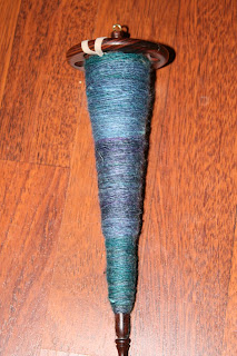 So the Bahama Blues yarn is done! Or at least for now, since yesterday I went to Holiday Faire and the spindle that I'd been working on (the one that got smashed by the former roommate by accident and reglued) is now in the hands of it's maker, literally... He's going to make me an identical one! :)