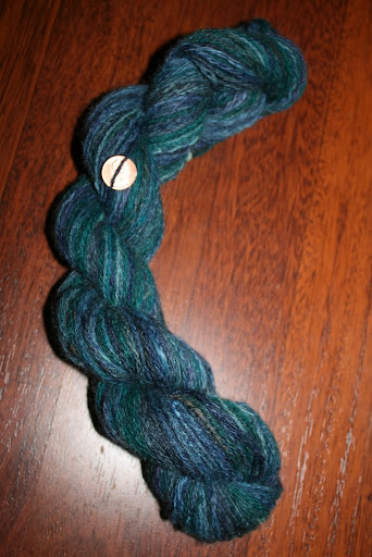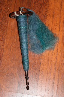 I also managed to bend the hook on top of my plying spindle enough that it came off. *sigh* This is what I get, the hook was never very good to begin with. I'm going to have to take the plying spindle, pull out what's left of the old hook, and replace the hook. The spindle itself is good for the purpose that it works for (plying only, it's too heavy for general spinning in my opinion), but the hook was never very good.