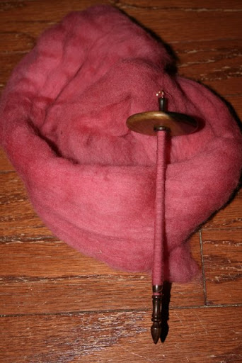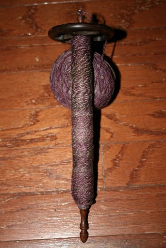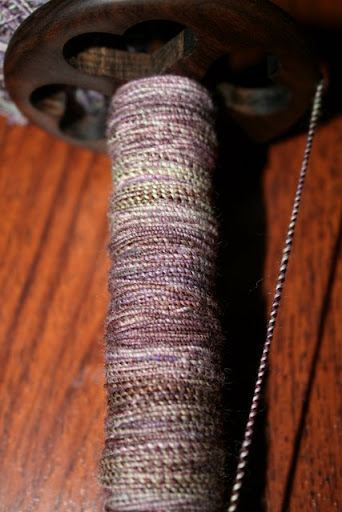 I'm alternating between pulling the plys apart and then spinning each side up on its respective spindle, and allowing the two cut-out spindles to dance around each other, spinning themselves out. It's faster the first way, but prettier the second. :)