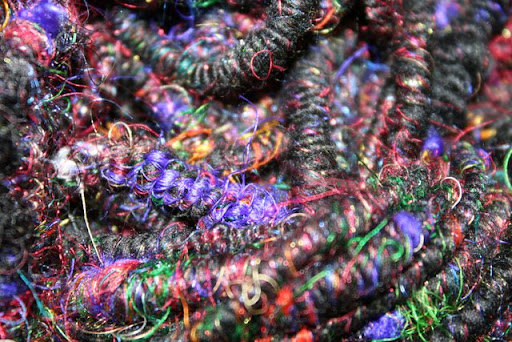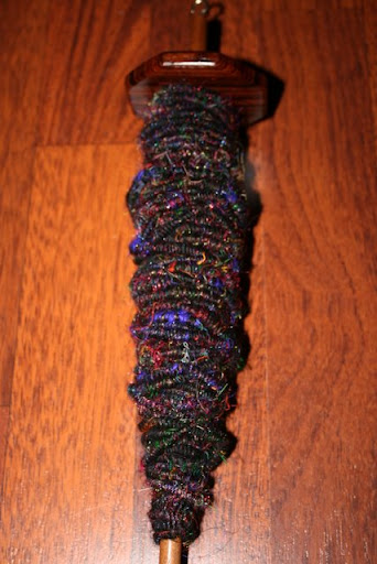 One thing about this yarn... I'm having to do a LOT of park and draft. This will be the first time I'm trying to do supercoils, and I'm not even sure if I've done it right, I may have to let a lot of the current energy untwist from it before I do the ply around the core yarn. I need to go look up a bit more on how to do this before I finish the second ply. Right now it's looking pretty good, thoguh! This is the first time I've been able to clear more than 3oz of yarn in less than 24 hours, and it's a really thick one!